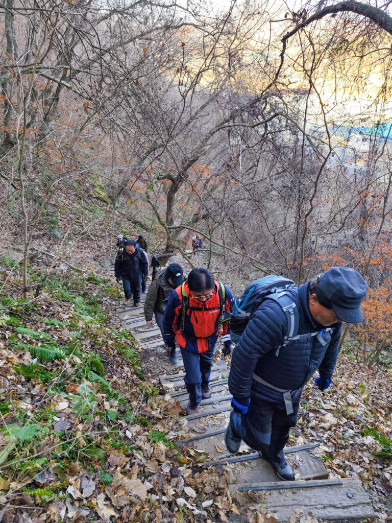 4회 산들애 회원들이 팔봉산 가파른 능선을 오르고 있다. /사진=엄두원