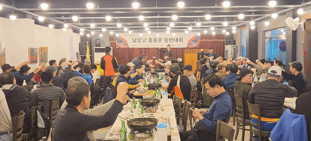 산행은 체력과 취향에 따라 둘레길 팀과 정상 종주 팀으로 나뉘어 진행됐다. 천장호를 따라 이어진 길에서는 잔잔한 호수 수면 위로 늦가을 단풍이 반사되어 풍광을 더했고, 천장호 출렁다리를 건너는 순간마다 환호와 셔터 소리가 이어졌다. 오랜만에 마주한 동문들 사이로 웃음이 끊이지 않았고, 산행을 마친 뒤 열린 뒤풀이에서는 화기애애한 분위기 속에 정이 더욱 돈독해졌다.