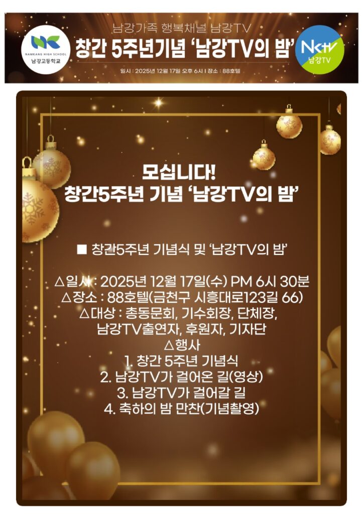 ‘남강가족 행복채널’ 남강TV가 창간 5주년을 맞아 기념식을 겸한 ‘남강TV의 밤’을 갖고 그동안 일군 성과를 자축하고 새로운 출발을 다짐했다.